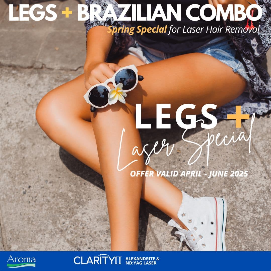 If you purchase a Full Legs laser hair removal package (6+1 free), you can purchase the Brazillian laser hair removal package (6+1 free) for 50% off.